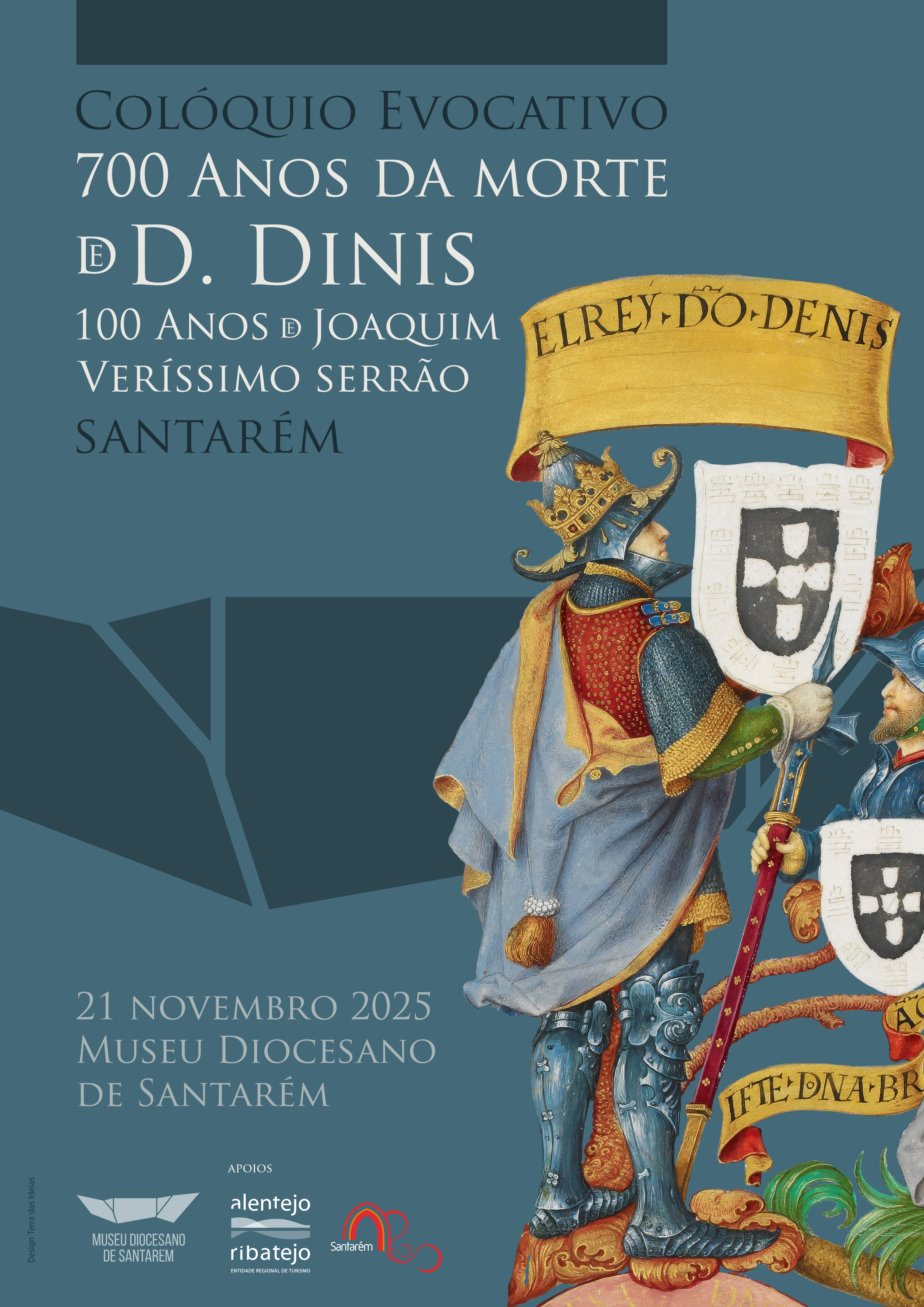 O Museu Diocesano de Santarém promove, no próximo dia 21 de novembro de 2025, um Colóquio evocativo dos 700 anos da morte do Rei D. Dinis, nos 100 anos do nascimento de Joaquim Veríssimo Serrão. Inscreva-se a participe!